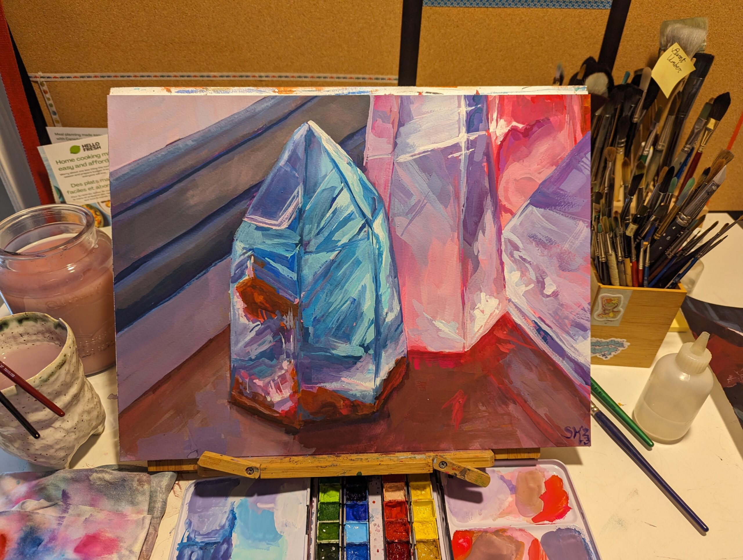 some left-handed gouache studies from the past week, after taking a couple months off thanks to the arm surgery and a deep fear that being bad at it would take all the fun out of it for me. painted on 12×16 paper, so I can get less mad about my wobbly left hand and focus more on larger marks and color and composition. good news! I’m not quite as bad at it as I had worried I would be, and it is mostly still very fun. bad news: not being able to draw a straight line continues to be a legit problem.