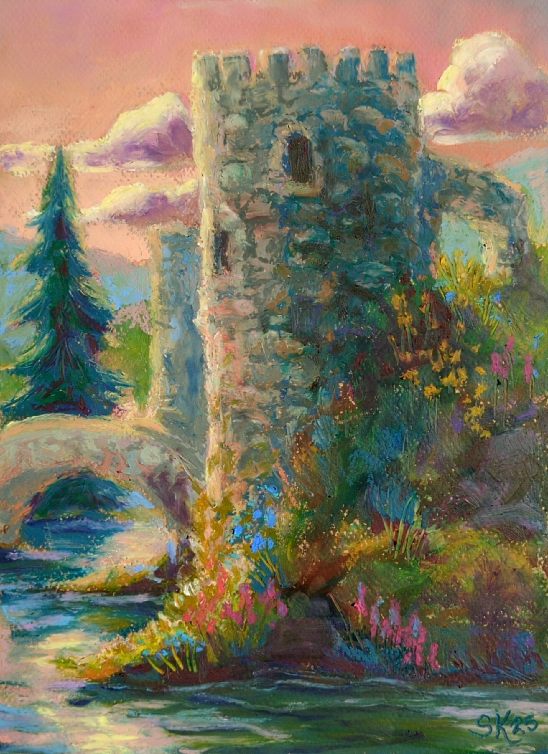 I painted this one on canson mi-teintes paper, with sennelier oil pastels, and was reminded that when used on paper, even the greasiest oil pastels do set somewhat! Between days, the pastels set up enough it wasn’t blendable with my finger, though it was certainly still smudgable and easy to scratch. This meant I did really need to think in passes or layers, knowing that what was underneath would be unlikely to move much.