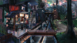 Solarpunk setting overview illustration for an unreleased game from Peculiar Path Games. I learned a lot about different types of boats creating this! Details, process work and research below.